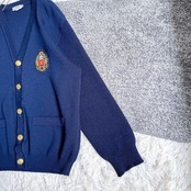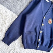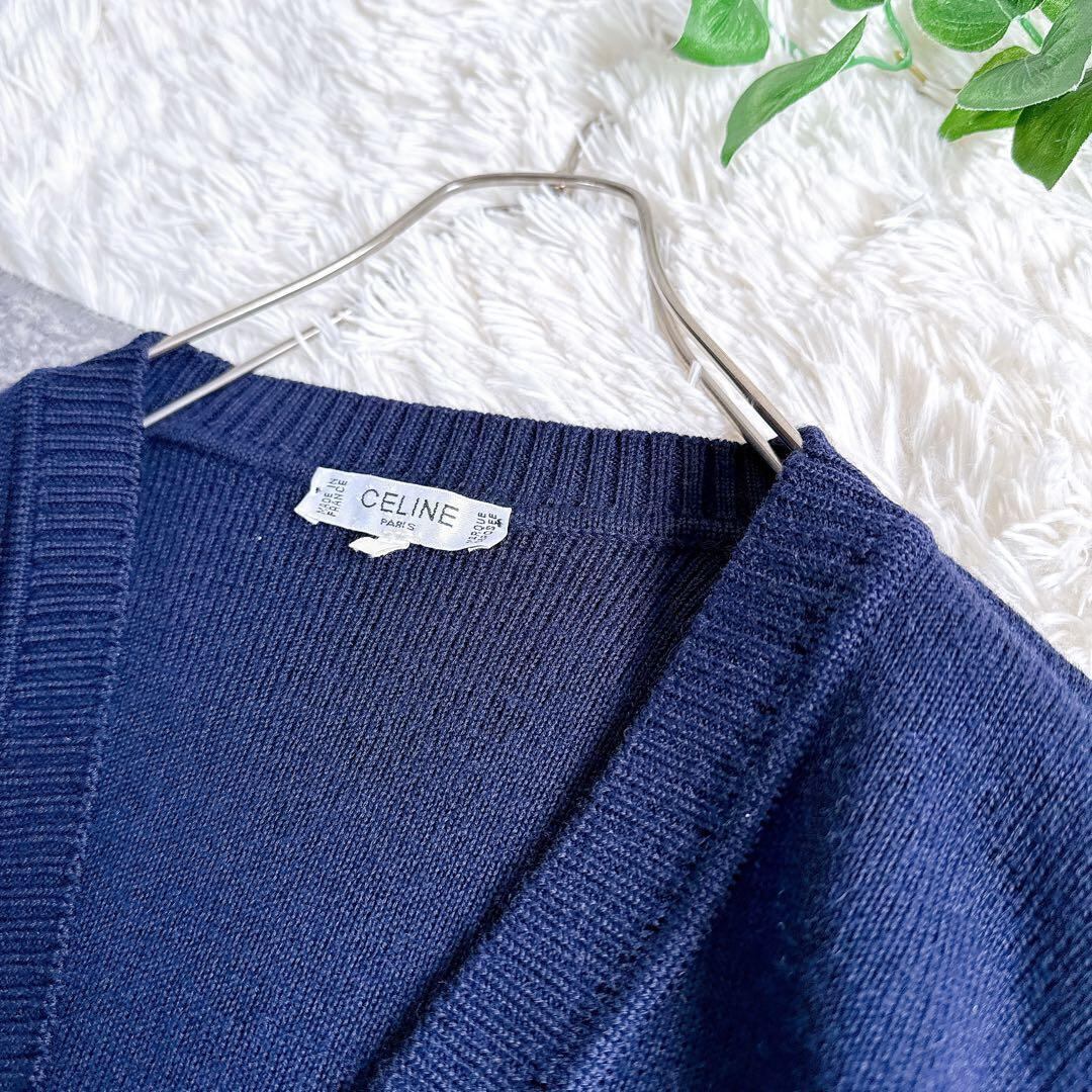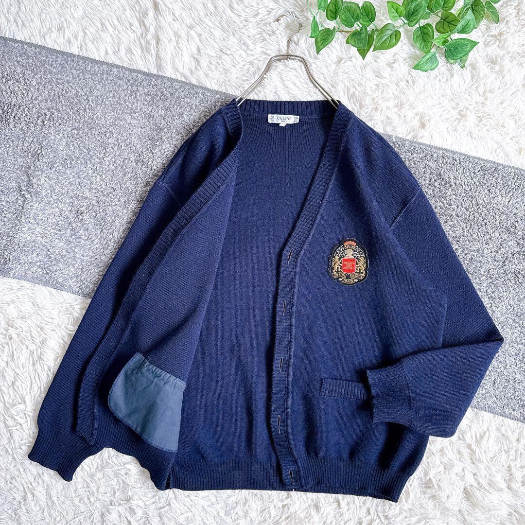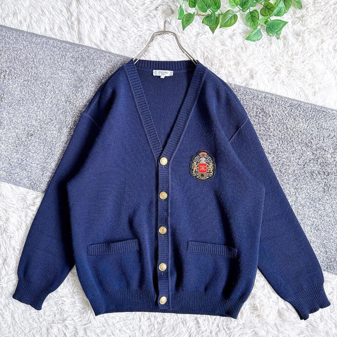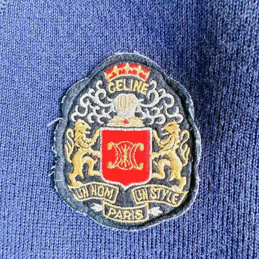 当時物 オールド セリーヌ カーディガン ワッペン 金ボタン 刻印入り 肉厚 紺