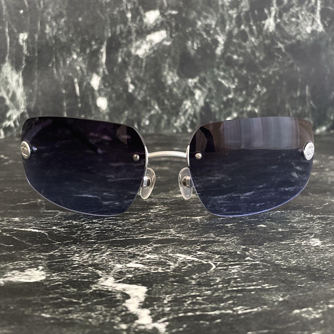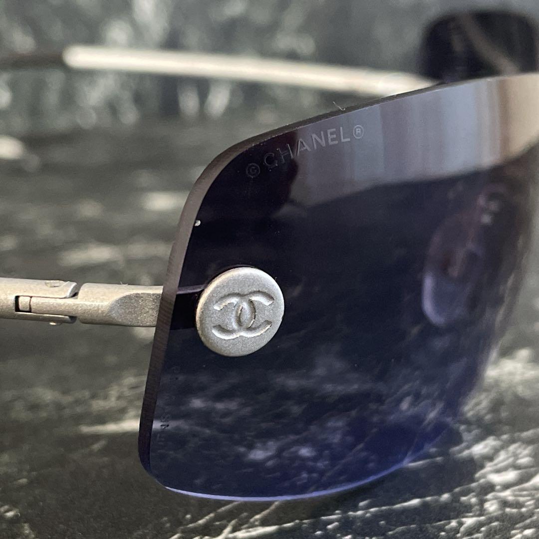 極美品 CHANEL シャネル ココマーク リムレス サングラス カラーレンズ グラデーションレンズ メタル ブルー シルバー