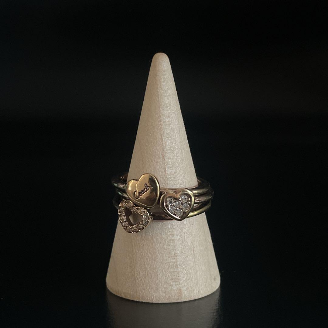 良品 coach コーチ ハートモチーフ 3連リング ラインストーン 指輪