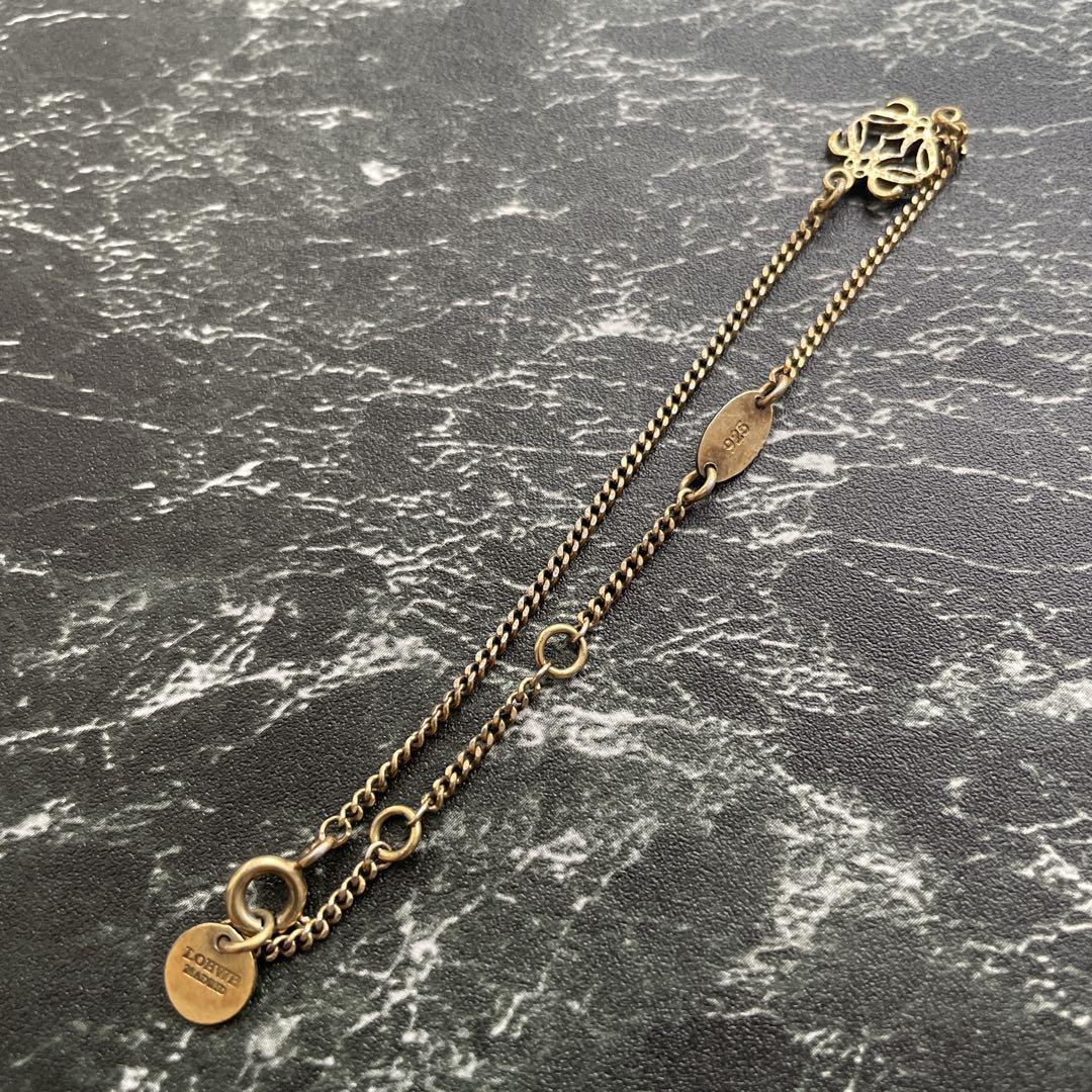 ロエベの象徴「アナグラム」モチーフが中央にあしらわれた、上品で洗練されたデザインのチェーンブレスレットです