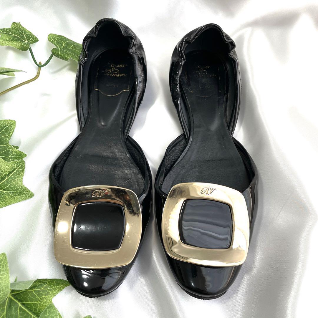ロジェヴィヴィエ フラットシューズ バレエシューズ ゴールド金具 ブラック