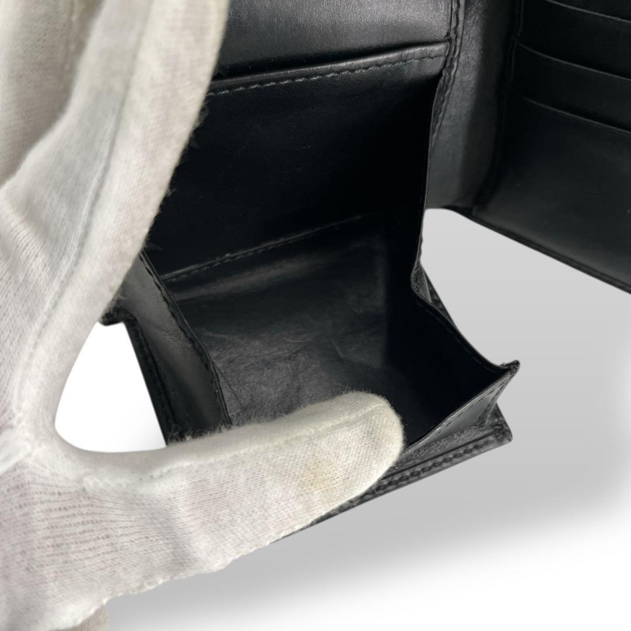 GUCCI 男女兼用 ユニセックス 型押しロゴ シルバー金具 ロゴ型押し 黒 折り財布