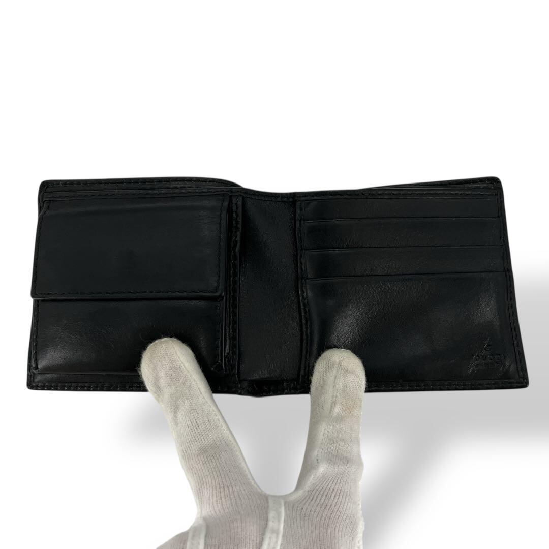 グッチ 二つ折り財布 インターロッキング コンパクトウォレット ブラック レザー
