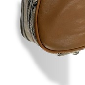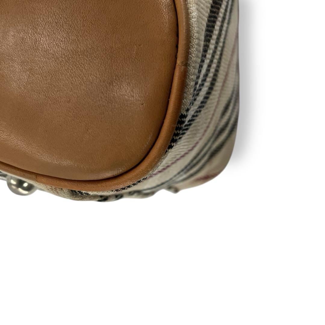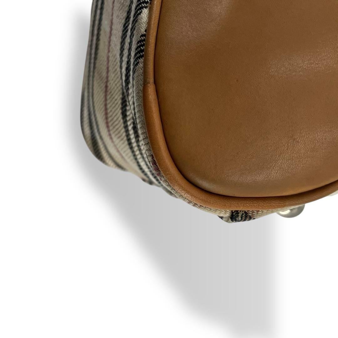 BURBERRY LONDON BLUE LABEL ミニボストンバッグ シルバー金具 ロゴ刻印 ベージュ ブラウン レザー 大容量