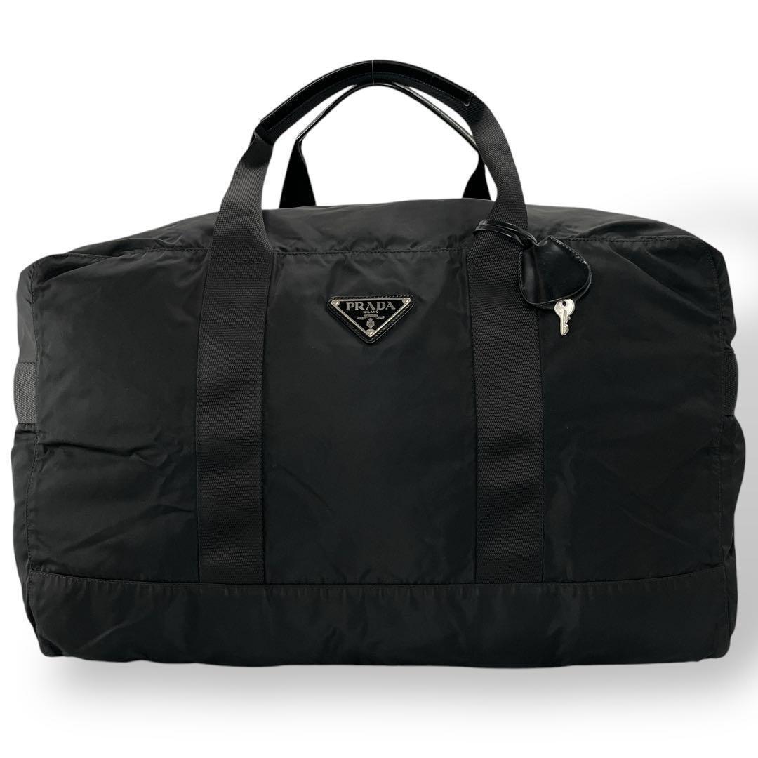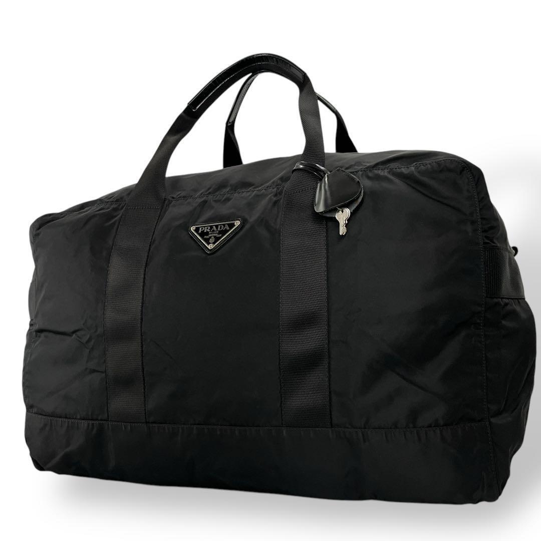 PRADA 大容量 特大容量 旅行カバン トラベルバッグ ショルダーバッグ シルバー金具 トライアングルアイコン 三角ロゴプレート 白タグ ランポ ブラック