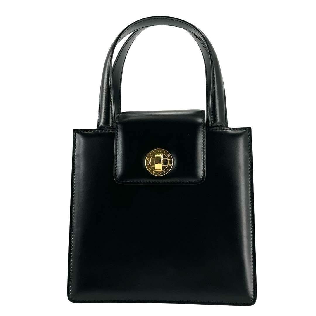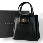 ブルガリ 2way フォーマルバッグ ハンドバッグ ターンロック レザー 黒