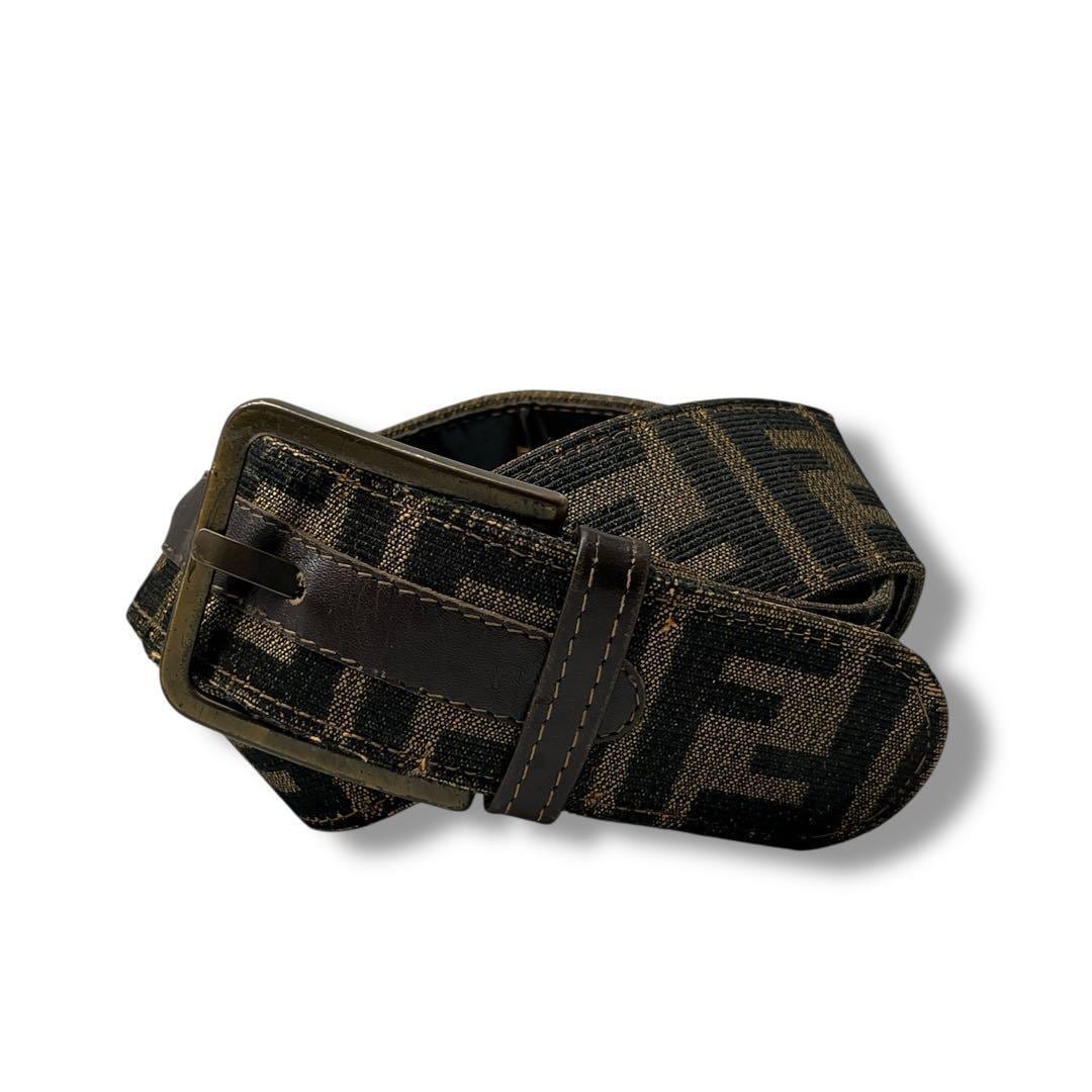 FENDI フェンディ ベルト ズッカ柄 FFロゴ ブラウン キャンバス レザー