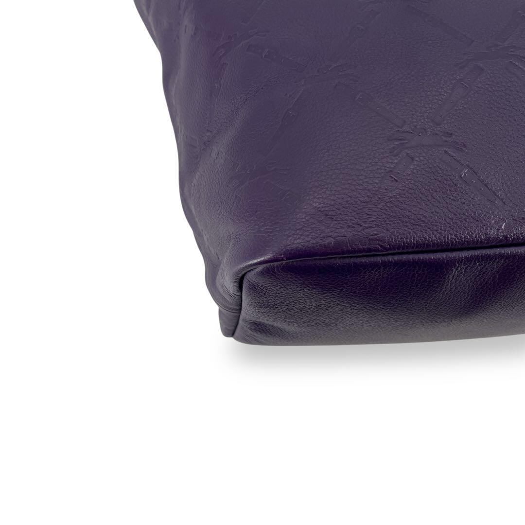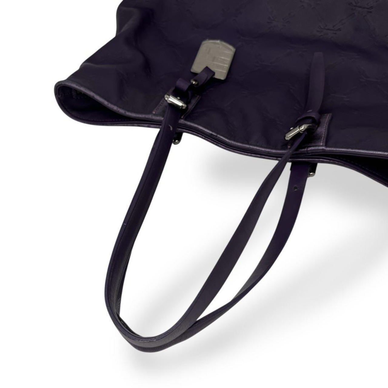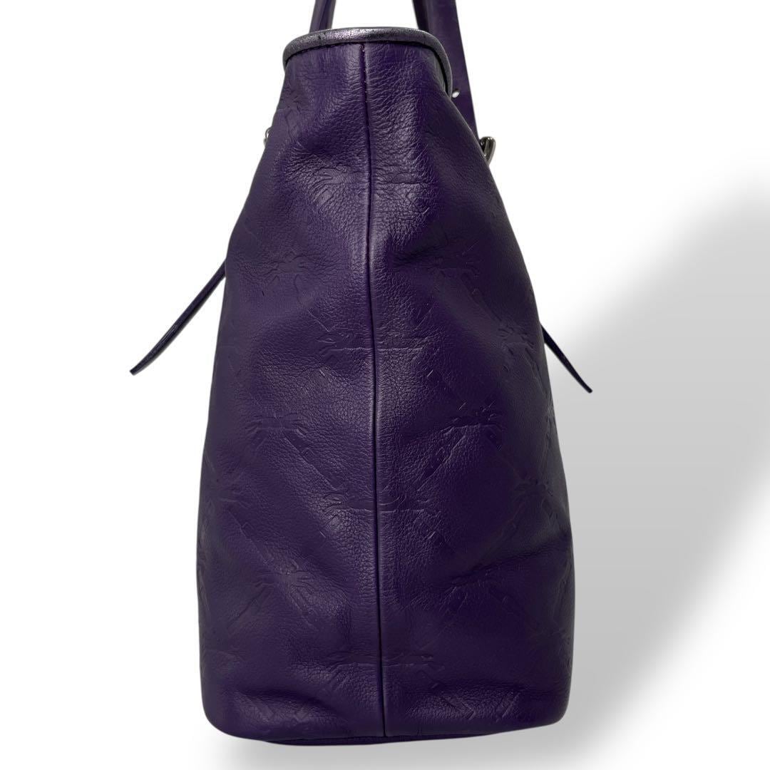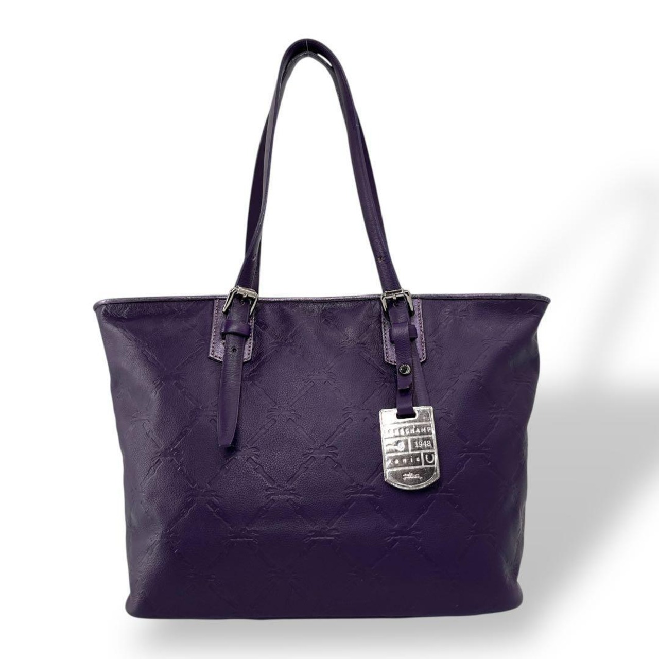 LONGCHAMP LM Cuir 紫 レザー ハンドバッグ 大容量 ロゴ刻印 シルバー金具 ロゴプレート ロゴ型押し