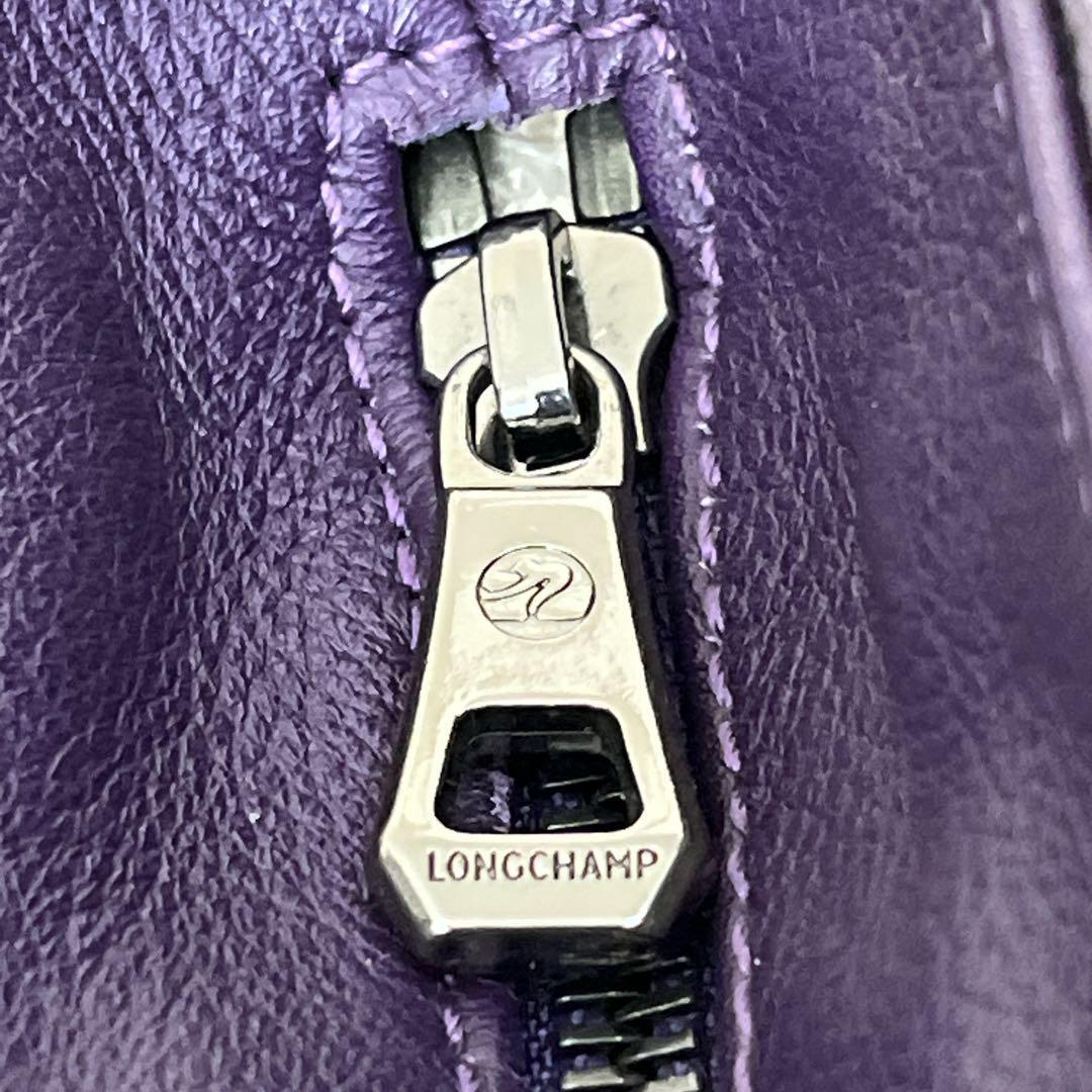 ロンシャン トートバッグ LMキュイール 肩掛け可 型押しロゴ パープル レザー