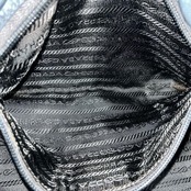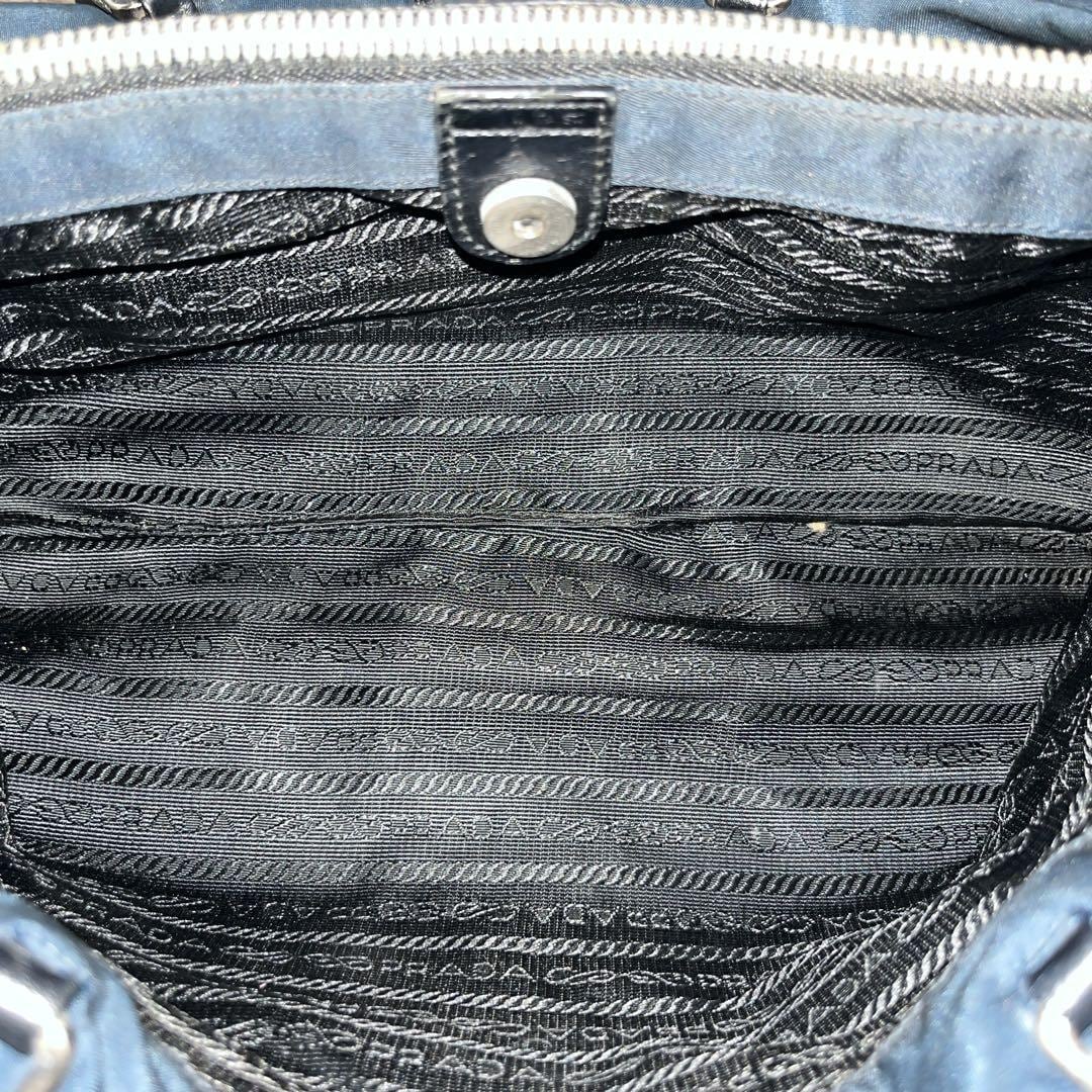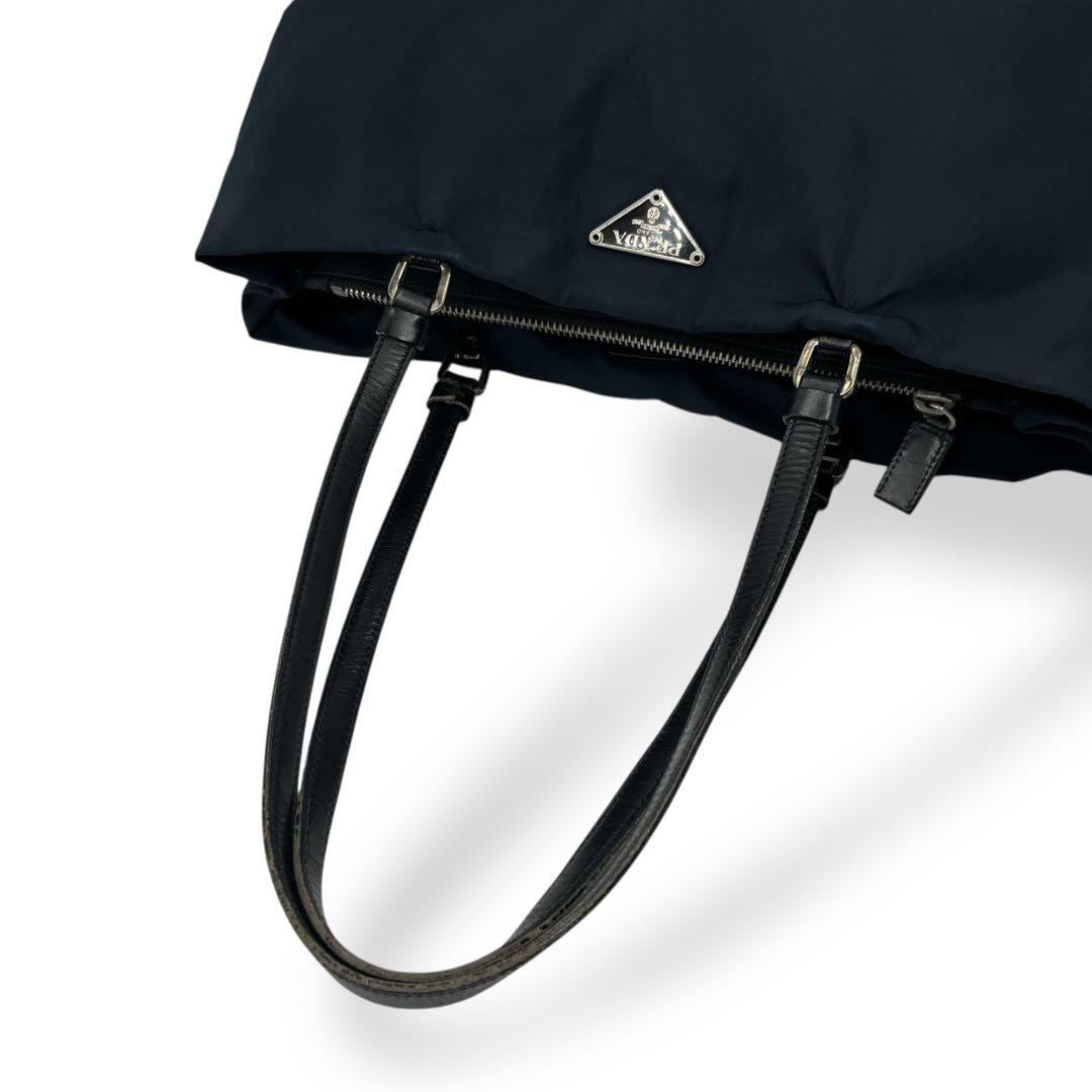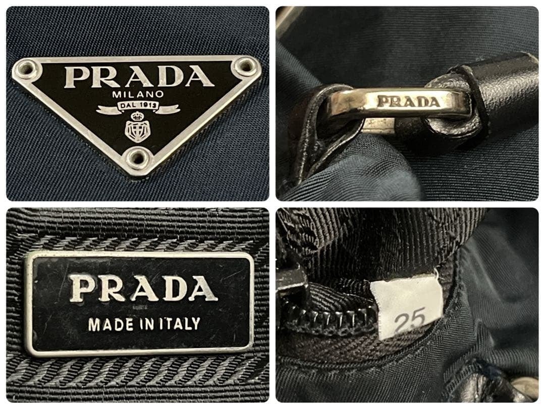 PRADA ネイビー テスートナイロン 三角ロゴプレート トライアングルアイコン 白タグ シルバー金具 ロゴ刻印