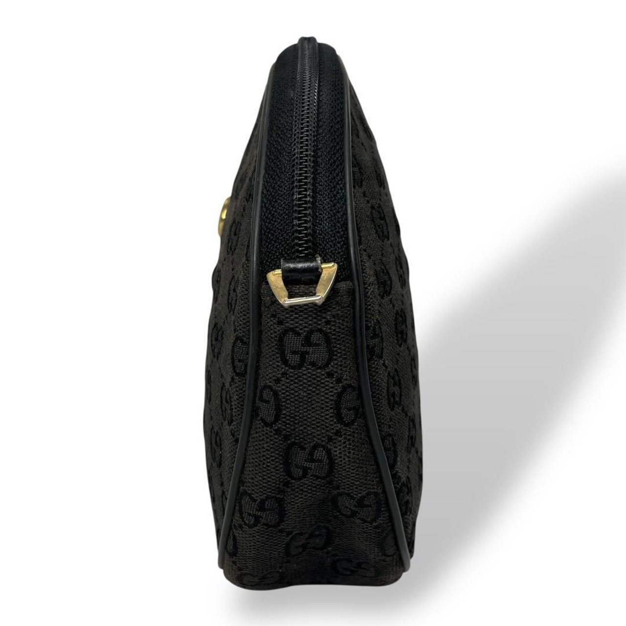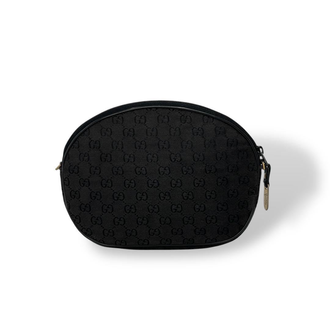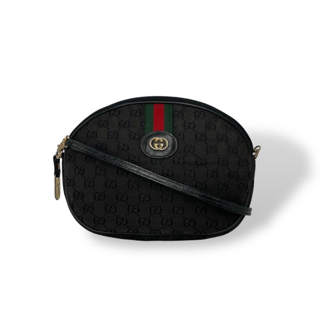 OLD GUCCI ヴィンテージ ビンテージ カメラバッグ ポシェット ミニショルダーバッグ ブラック 黒 レザー インターロッキング ゴールド金具 ロゴ刻印 GG柄 総柄 丸型 丸形