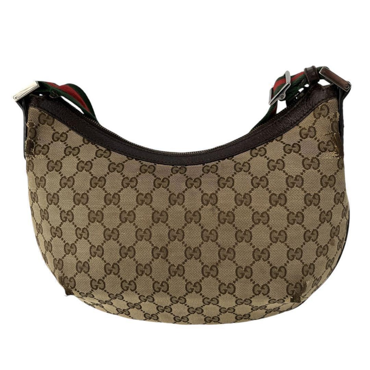 ショルダーバッグ GGキャンバス シェリーライン ハーフムーン ブラウン ロゴ 斜めがけ クロスボディ キャンパス GG柄 総柄 シルバー金具 三日月型