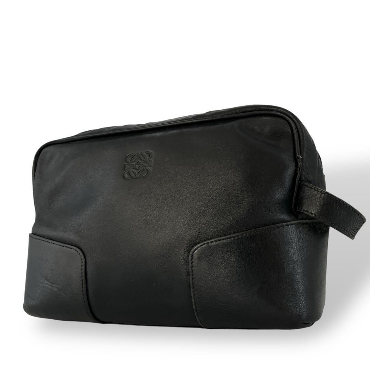 良品 ロエベ アナグラム クラッチバッグ セカンドバッグ 型押しロゴ レザー 黒