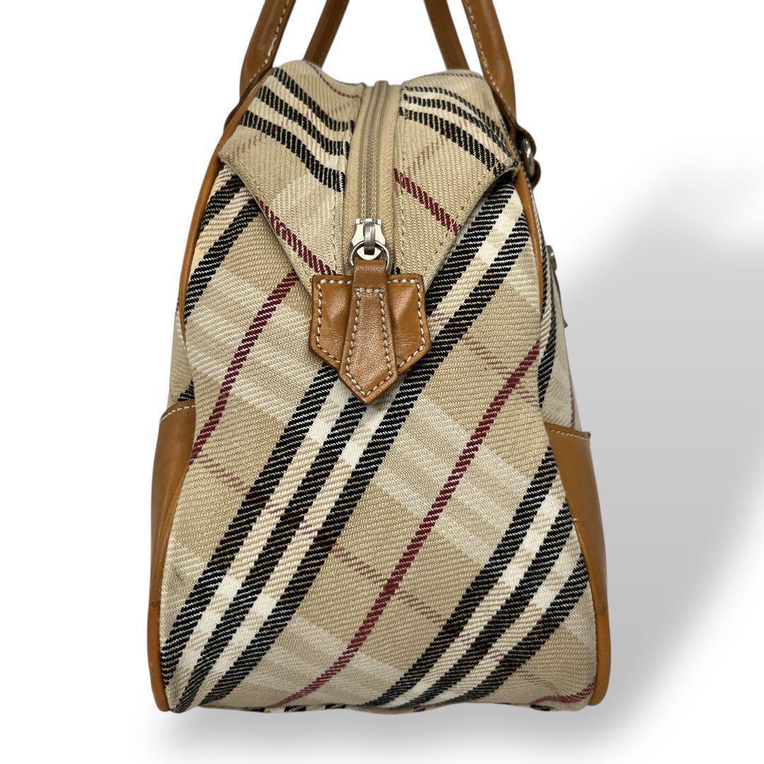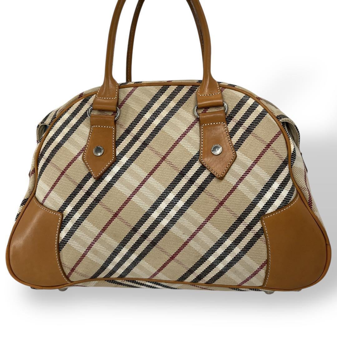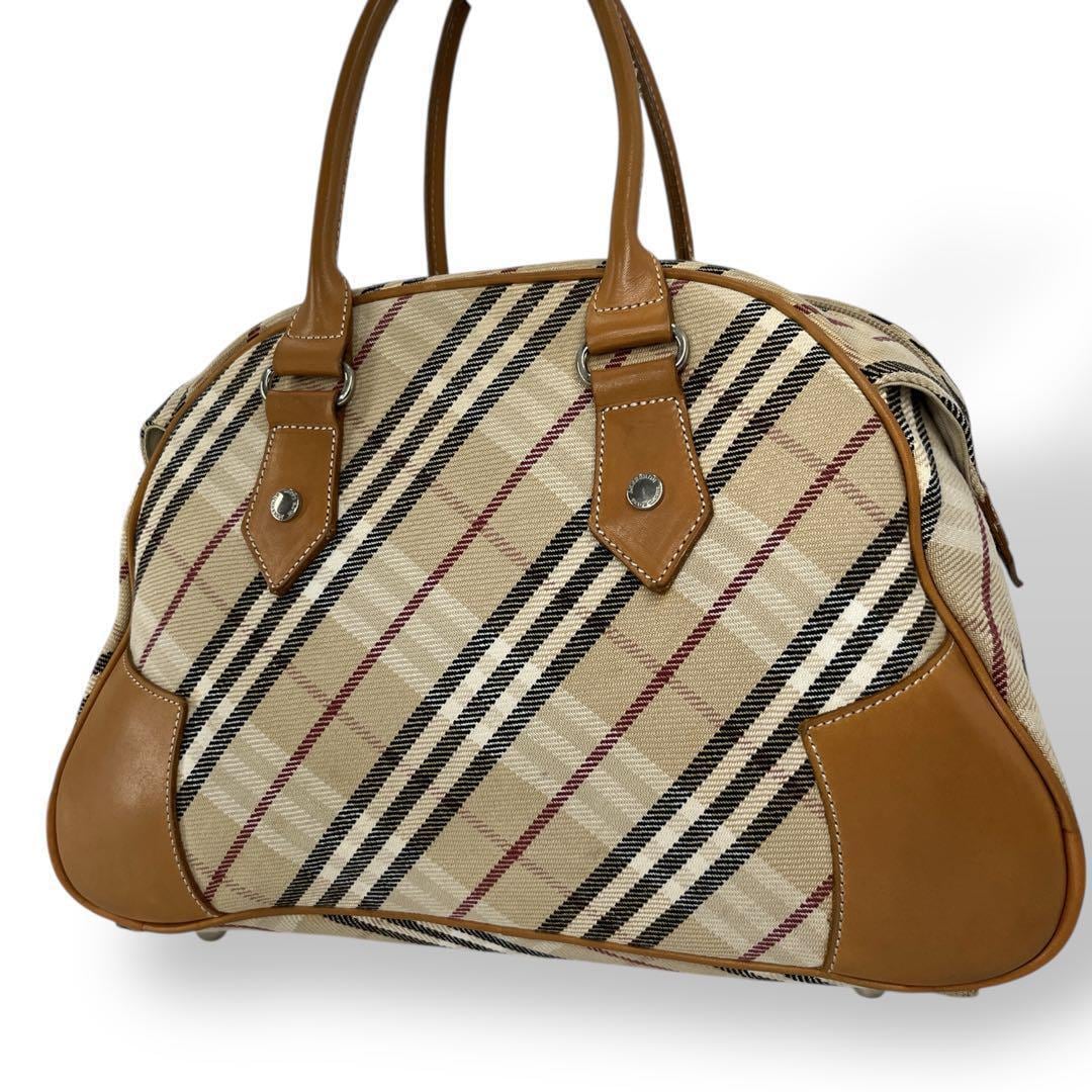 BURBERRY LONDON BLUE LABEL ミニボストンバッグ シルバー金具 ロゴ刻印 ベージュ ブラウン レザー 大容量