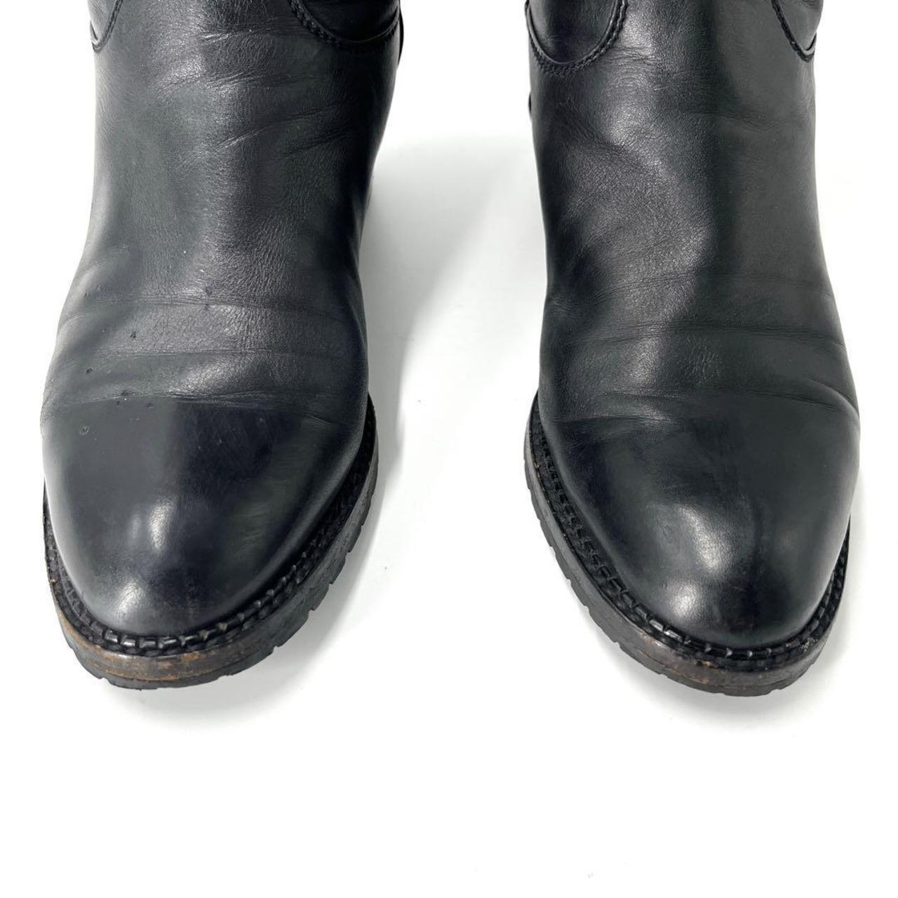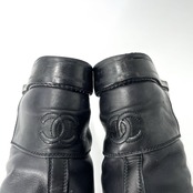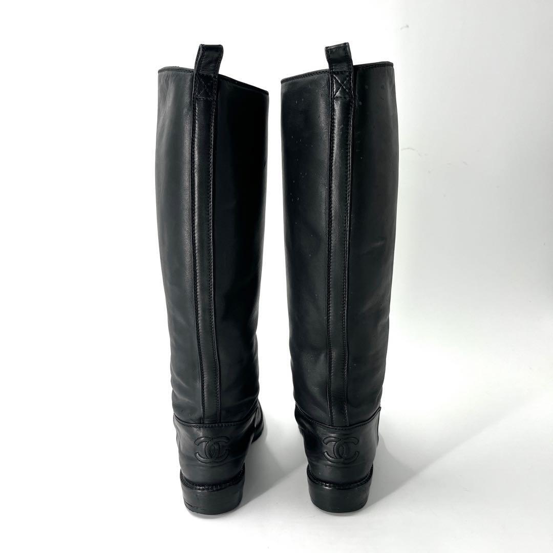 良品 シャネル ロングブーツ ココマーク ステッチ レザー ブラック オールド