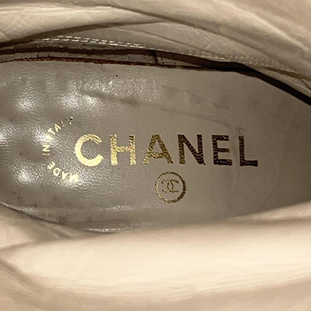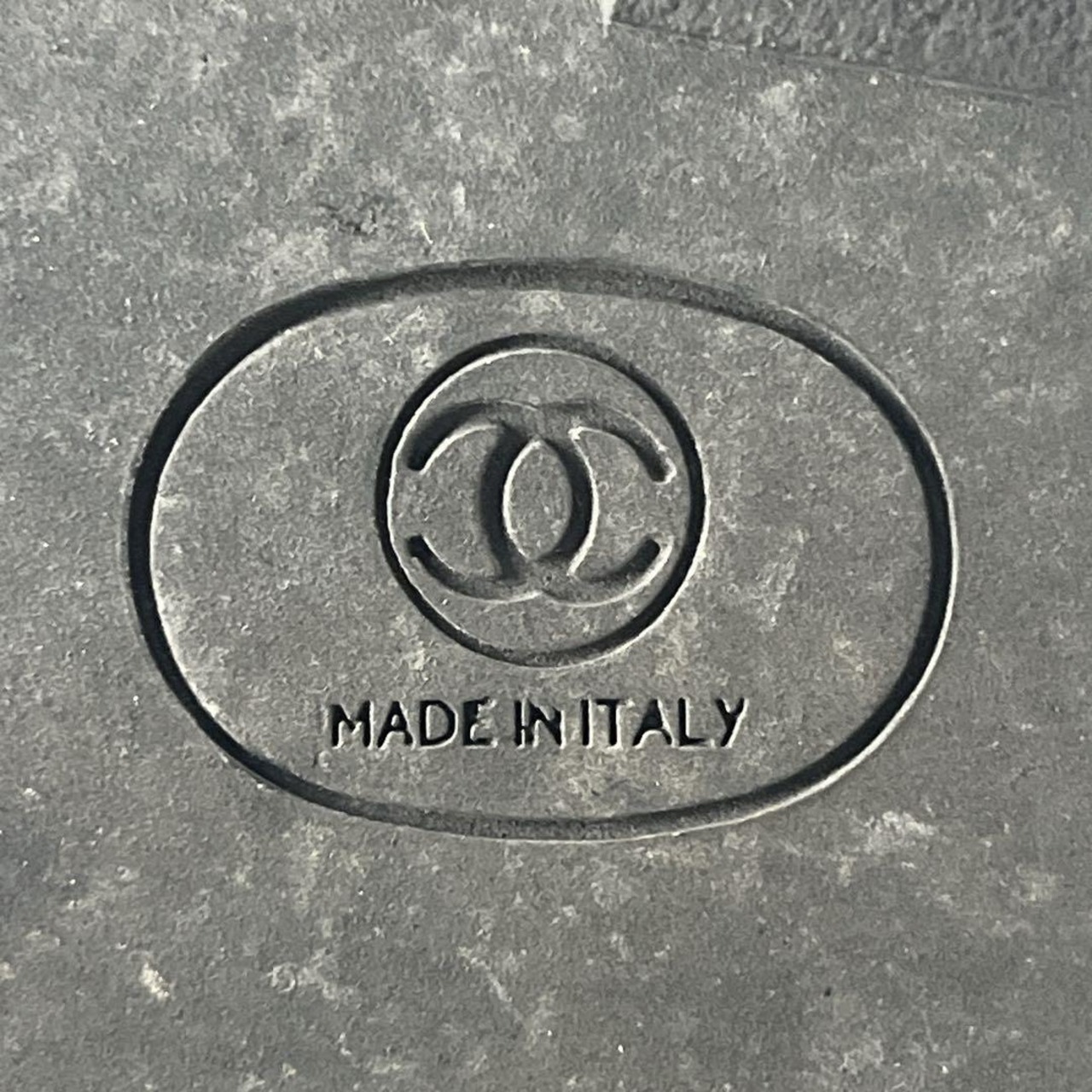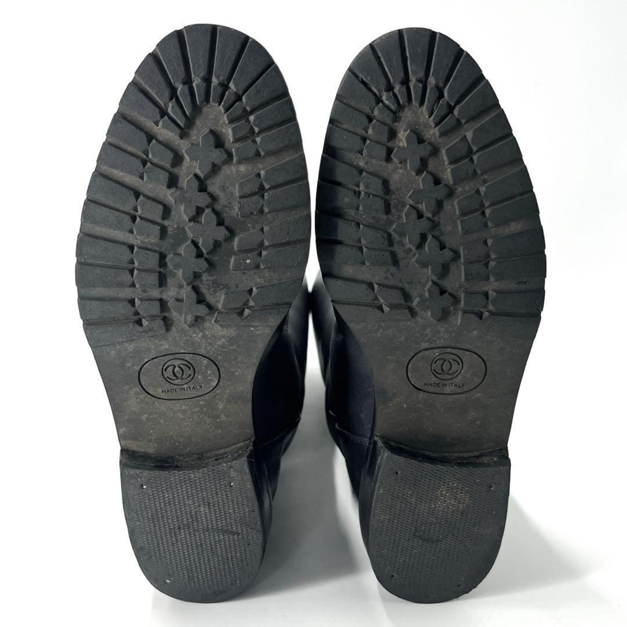 CHANEL 黒 ブーティ ロゴ型押し エンボス 型押しロゴ