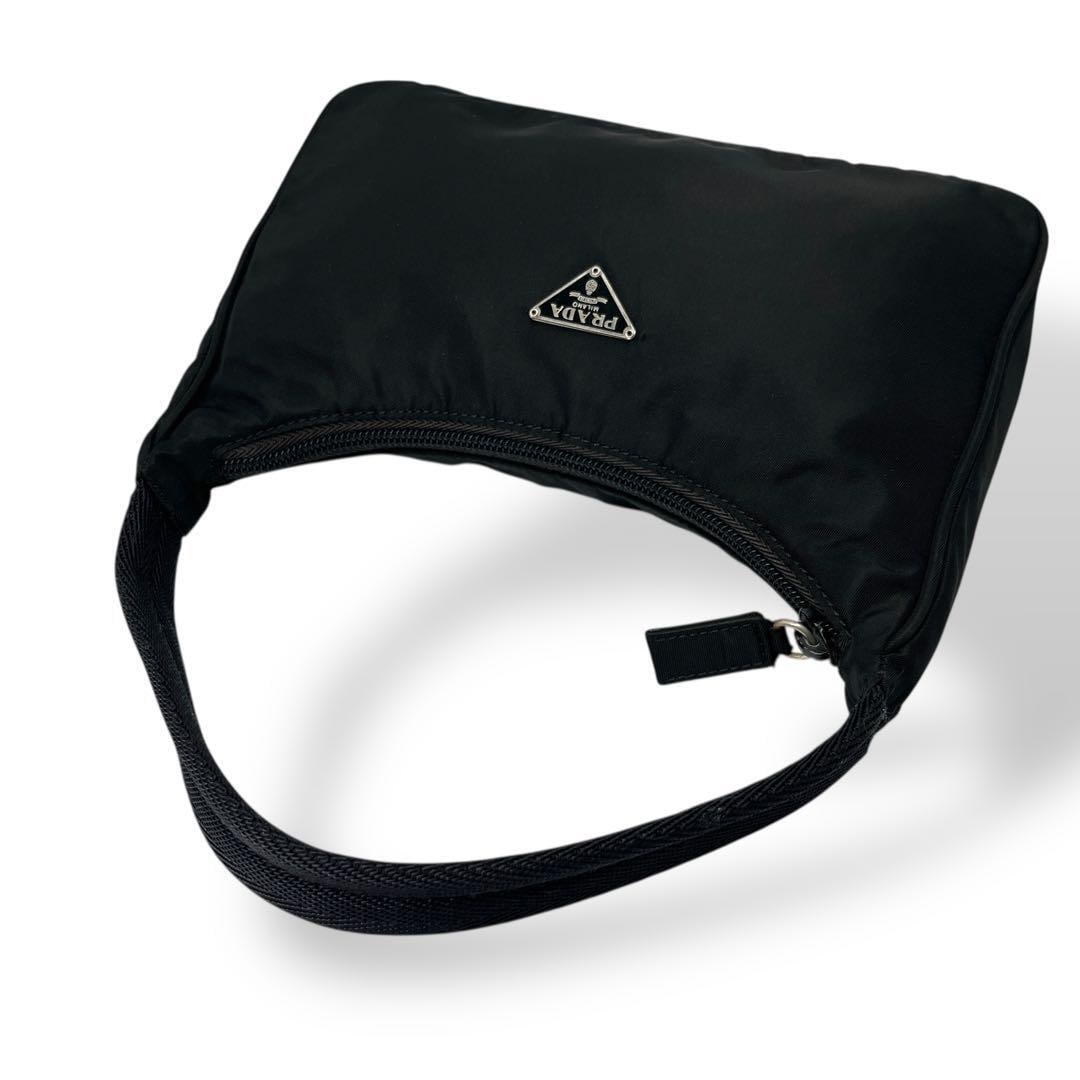 PRADA 白タグ シルバー金具 トライアングルアイコン 三角ロゴプレート コスメポーチ メイクポーチ 化粧ポーチ ブラック