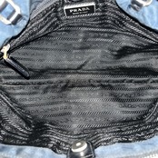 PRADA ネイビー テスートナイロン 三角ロゴプレート トライアングルアイコン 白タグ シルバー金具 ロゴ刻印