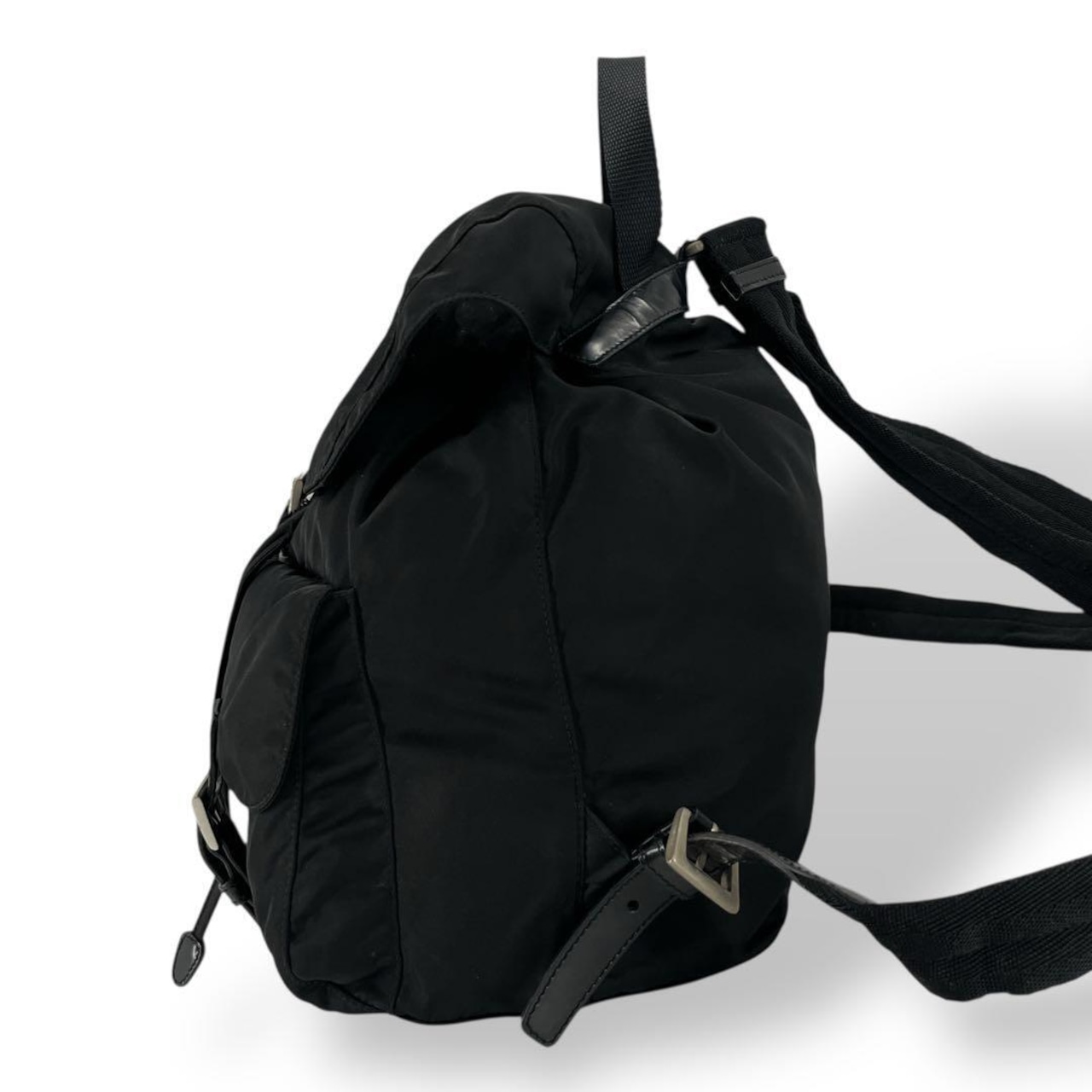 PRADA シルバー金具 ロゴ刻印 白タグ 三角ロゴプレート トライアングルアイコン 黒 デイパック A4収納可 男女兼用 ユニセックス