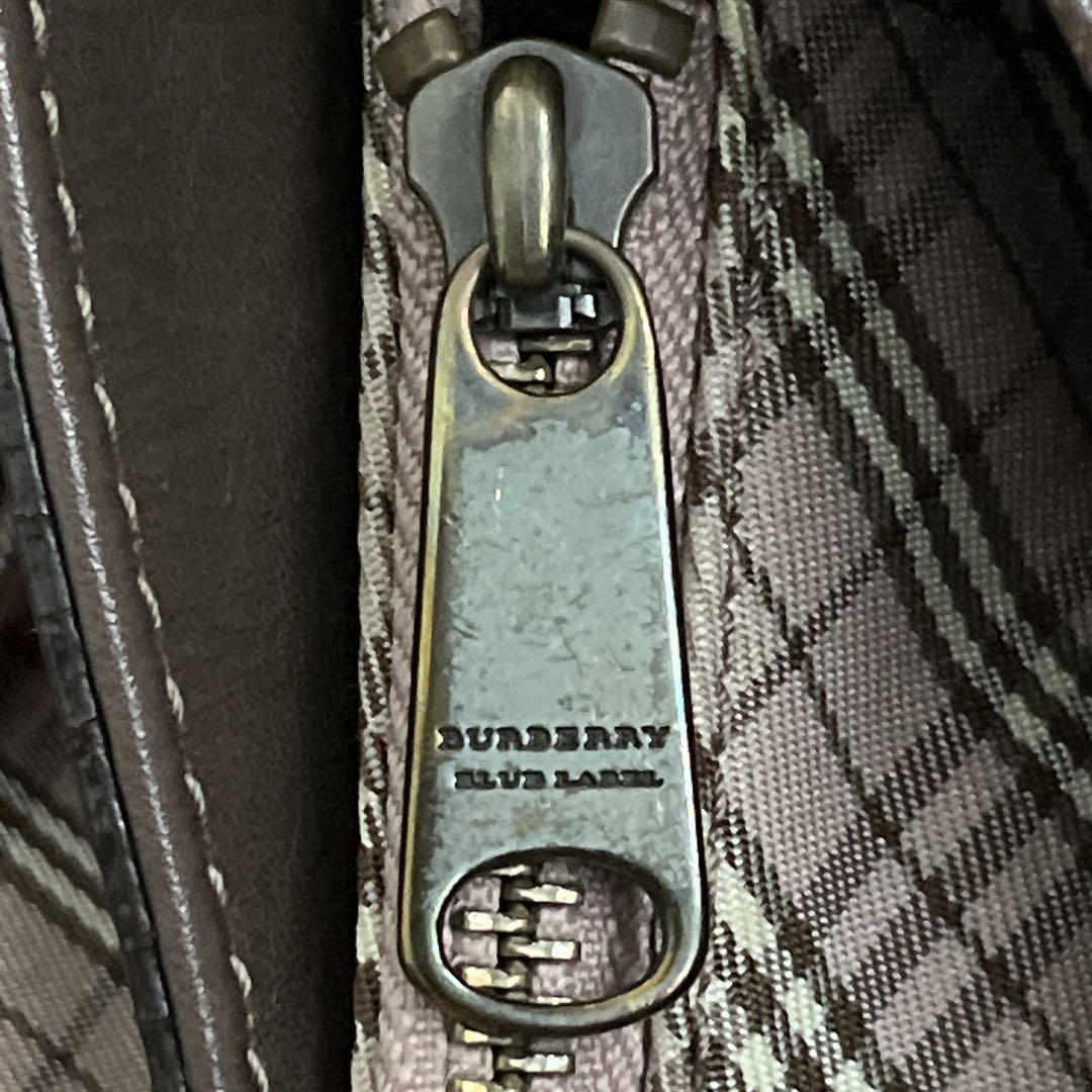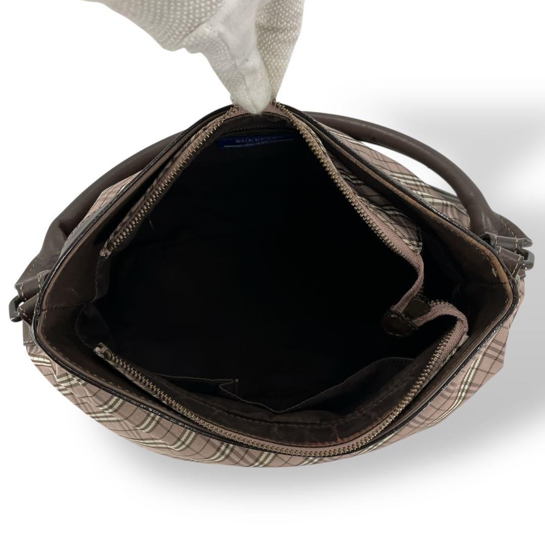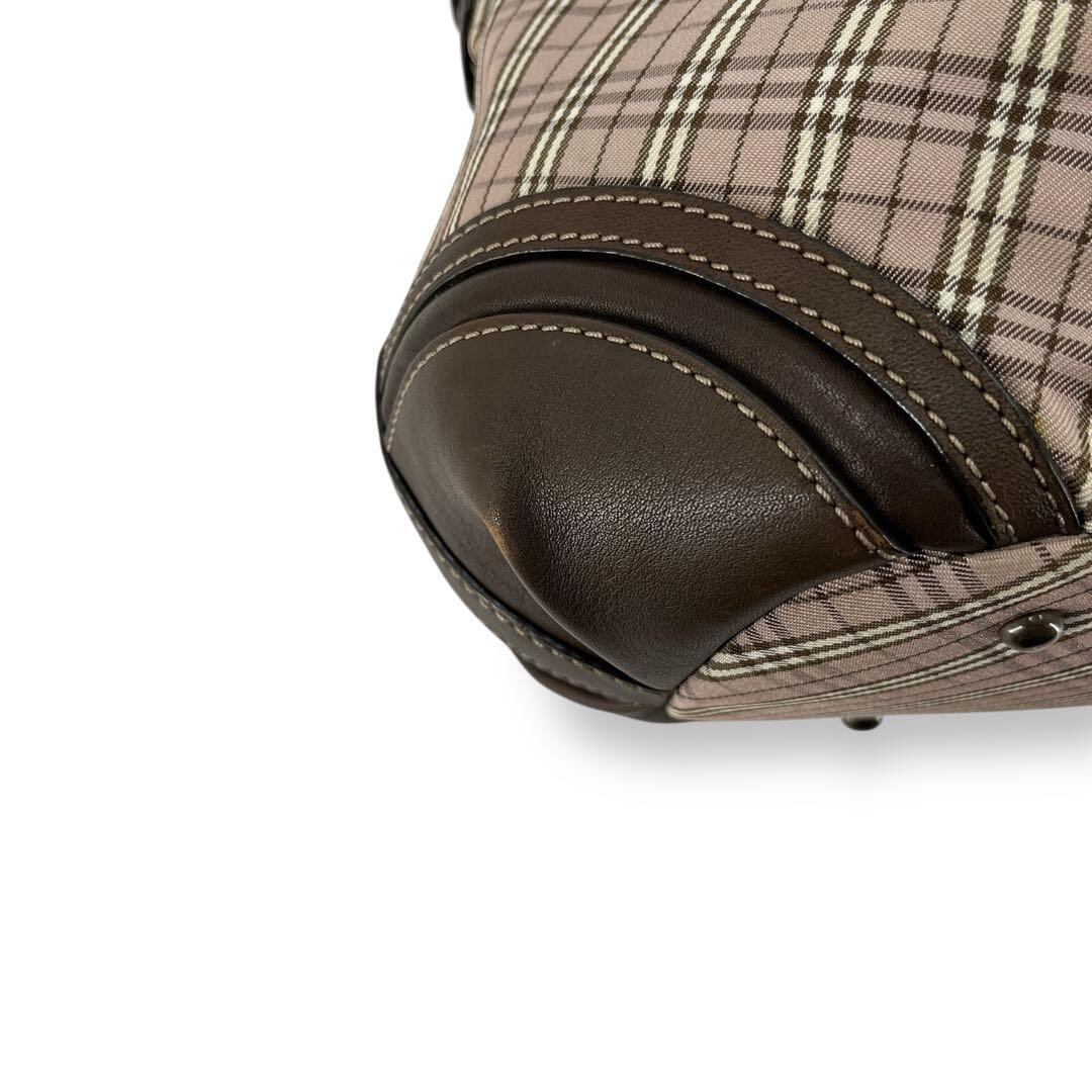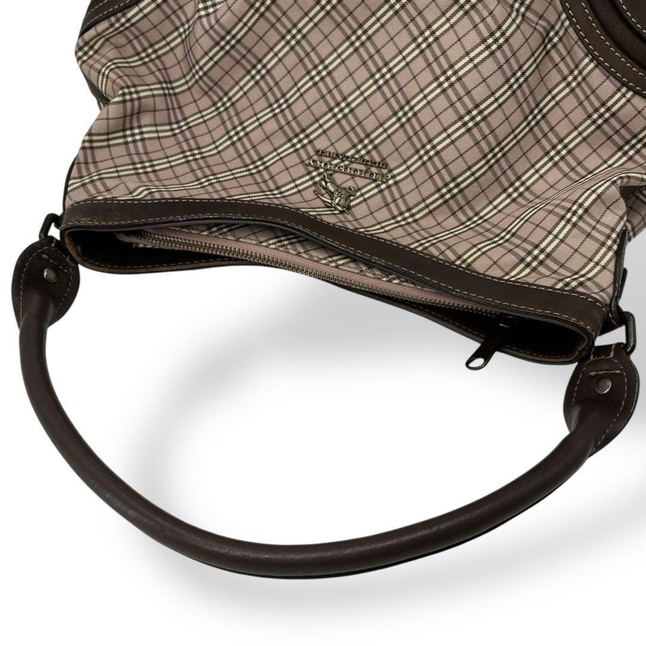 BURBERRY BLUELABEL ピンクベージュ ブラウン レザー 肩掛け ハンドバッグ ロゴ刻印 ゴールド金具 ホースロゴ