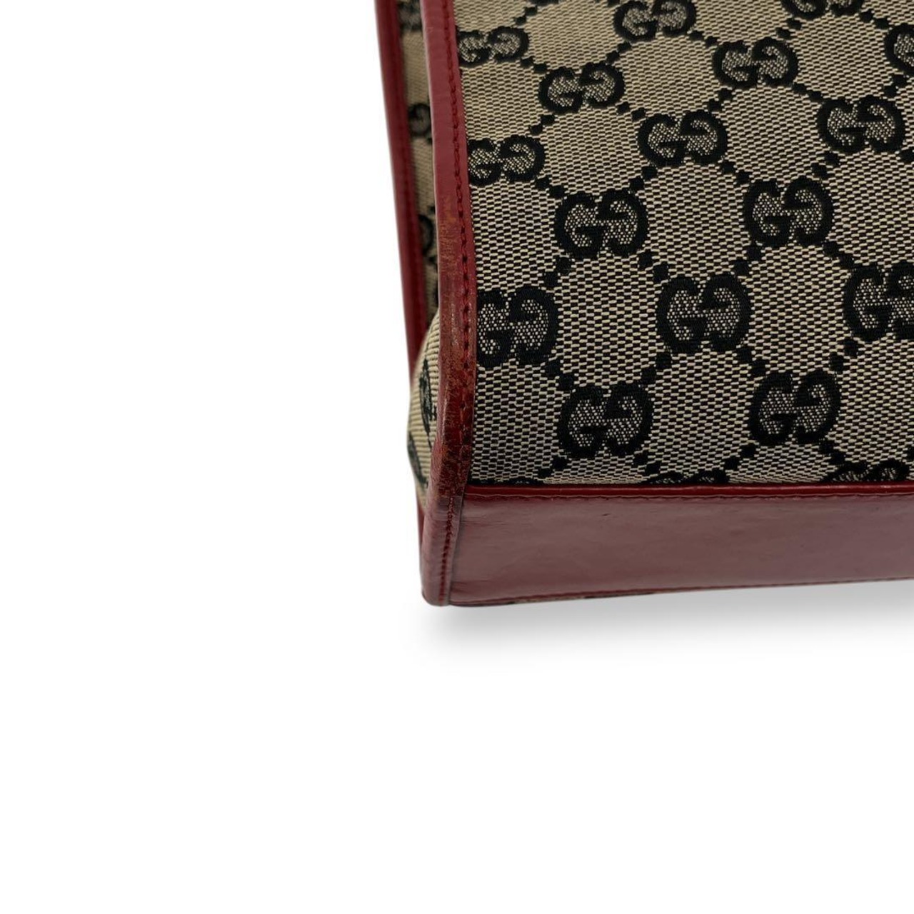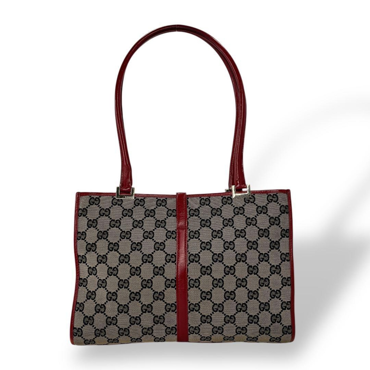 GUCCI グレー 赤 レッド ワンショルダーバッグ ミニトートバッグ GG柄 ロゴ刻印 ゴールド金具