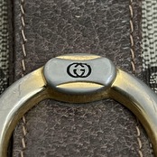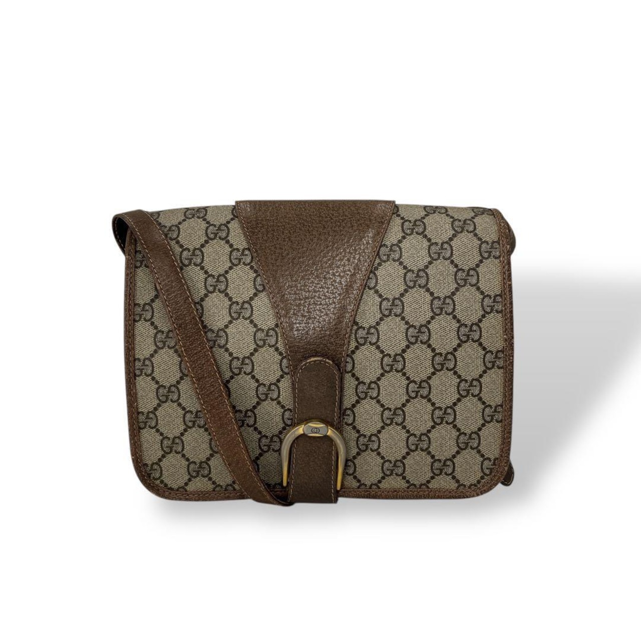 OLD GUCCI カメラバッグ ブラウン PVCレザー ヴィンテージ ビンテージ GG柄 ゴールド金具 インターロッキング フラップ