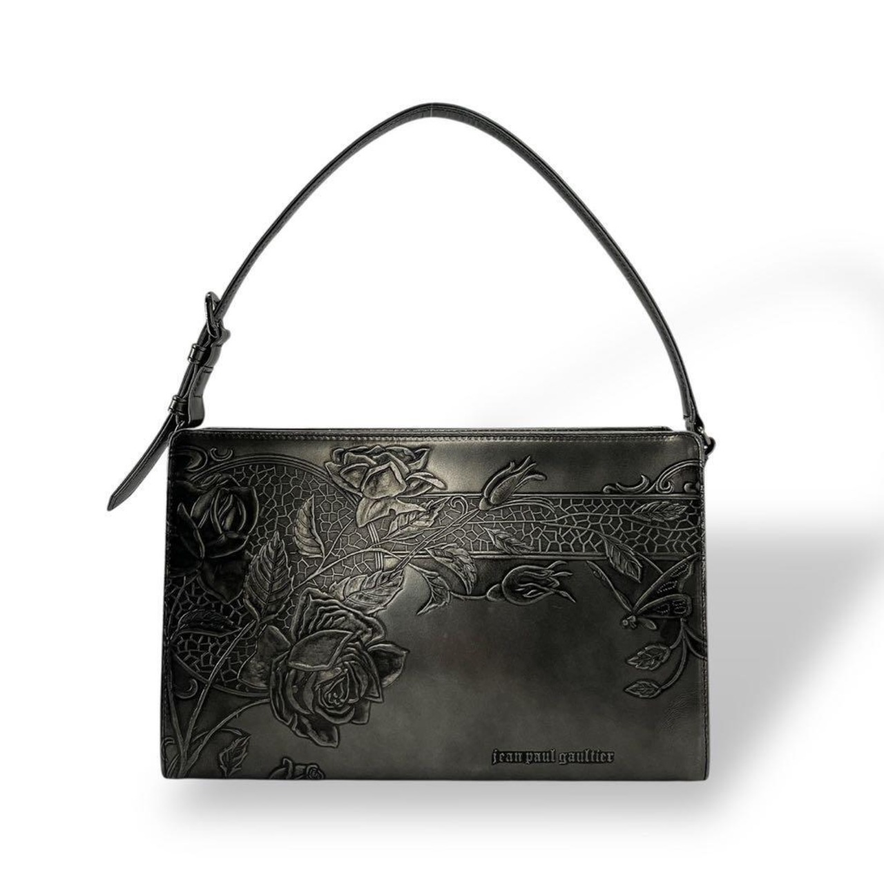 Jean Paul Gaultier 肩掛け メタリック シルバー ロゴ シルバー金具 ロゴ刻印 バラ 花柄